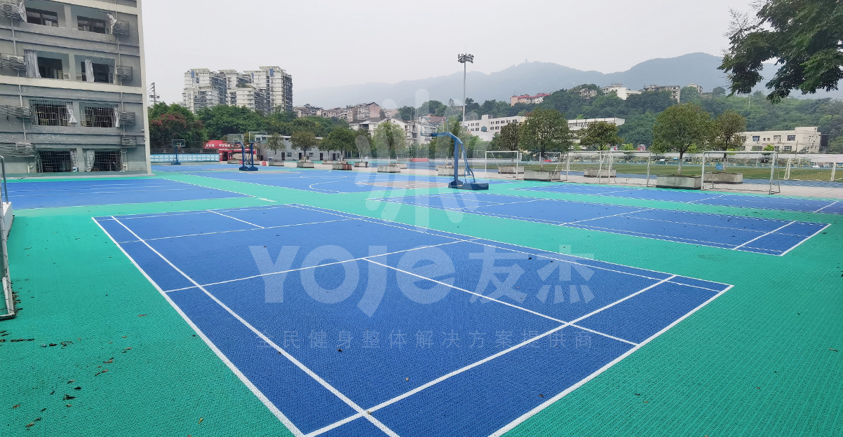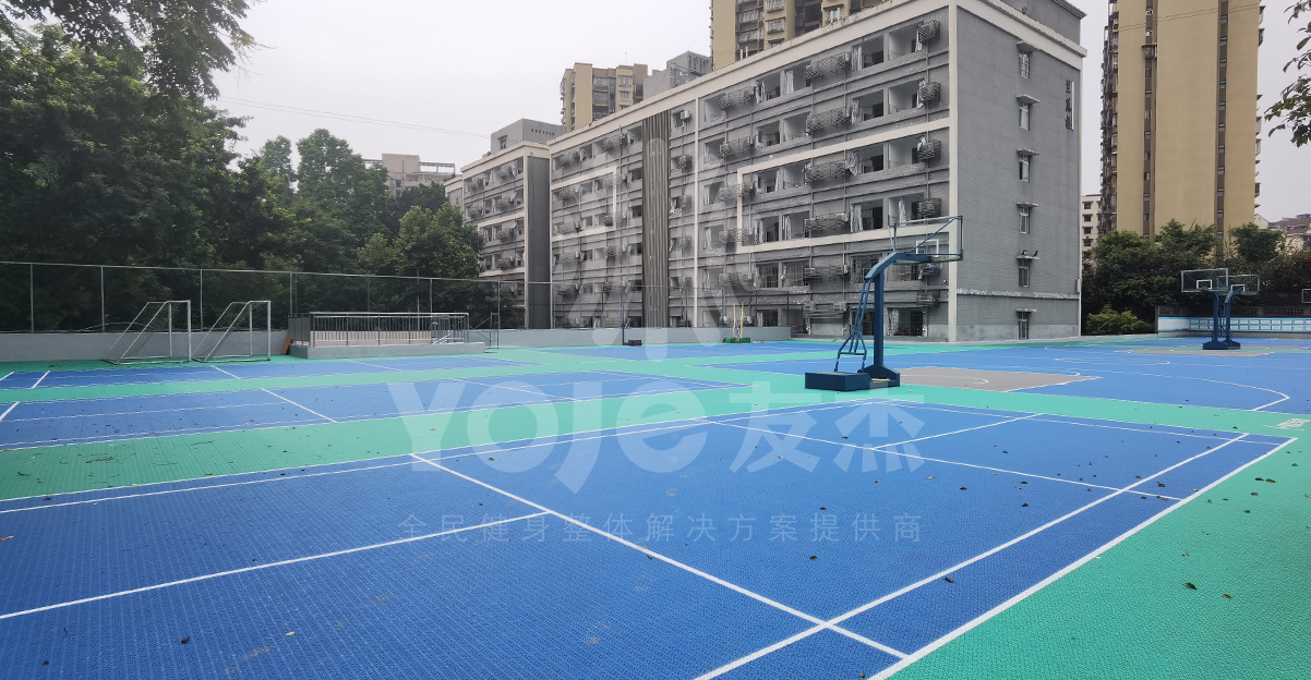 西南大學附屬中學校創建于1914年(民國三年),原名“四川省立第二女子師范學校”;2011年,更名為“西南大學附屬中學校”。由于經過多年的使用,這所名校的球場地面已經非常陳舊,不僅影響美觀,在上面打球也有受傷的風險,新球場的建設迫在眉睫。友杰體育是一家集設計、供應、施工、售后為一體的場館、場地、體育設施建設之企業。針對校園體育場地場館建設也非常有經驗,經過前期細致的調研并提出相關施工方案,得到學校領導的認可。最終友杰最專業的施工團隊經過不懈的努力,為大家呈現驚艷的最終效果。