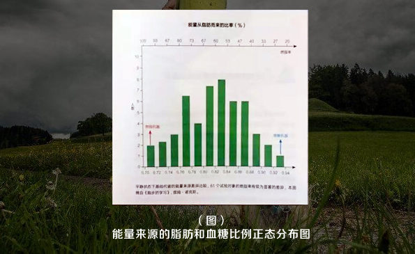 在這里會呈一個正態分布,居于中間的最多。同時看看兩端,有些人基本坐在那里基本都是在消耗脂肪的,而有些人基本都是以消耗血糖作為自己能量供給的主要方式。