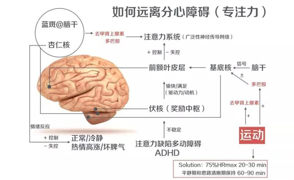 在這里再多說一下如果每次保持在 75% 最大心率左右維持運動 20-30 分鐘有利于提高注意力。這樣每次跑步結束之后的平靜期和思路清晰期保持 60-90 分鐘。如果你平時的注意力不集中,甚至有 ADHD 的話可以特別嘗試使用這種跑步強度訓練的方法。